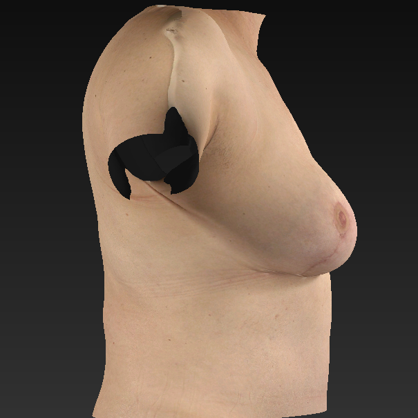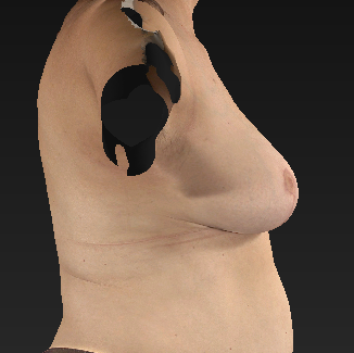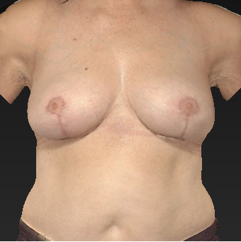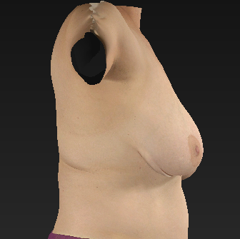 65 year old patient before bilateral breast revision with removal and replacement of implants, capsulorrhaphy with placement of Galaflexmesh and mastopexy