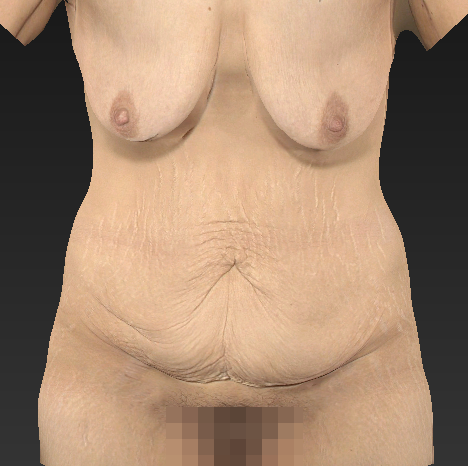 54 year old patient before bilateral circumvertical mastopexy, high lateral tension abdominoplasty, mons pubis reduction and axillary liposuction